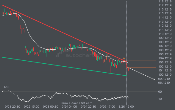 LTCUSD was identified at around 101.83 having recently rebounded of the resistance on the 30 Minutes data interval. Ultimately, the price action of the stock has formed a Falling Wedge pattern. This squeeze may increases the chances of a strong breakout. The projected movement will potentially take the price to around the 98.7964 level.