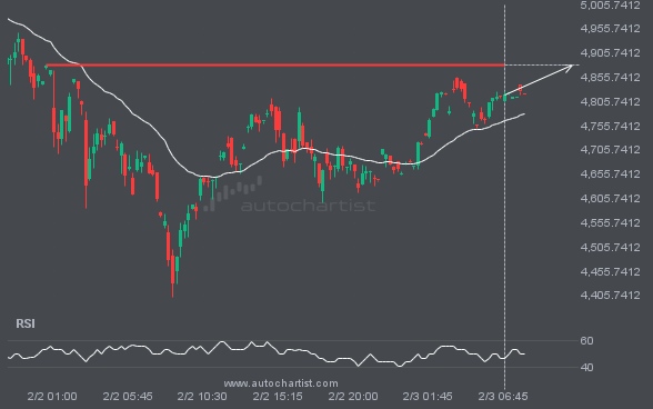 A strong resistance level has been identified at 4881.5898 on the 15 Minutes XAUUSD chart. XAUUSD is likely to test this level soon.